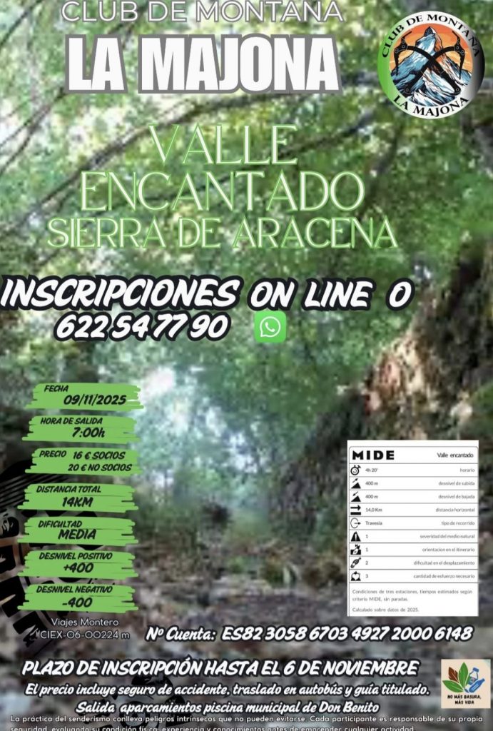 El Club de Montaña La Majona, de Don Benito, vuelve a calzarse las botas para vivir una nueva aventura. En esta ocasión, los amantes del senderismo se dirigirán al sur para disfrutar de una ruta por el Valle Encantado, un enclave de gran belleza natural situado en plena Sierra de Aracena y Picos de Aroche.