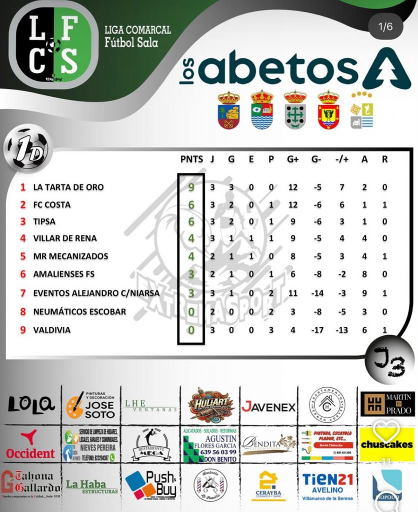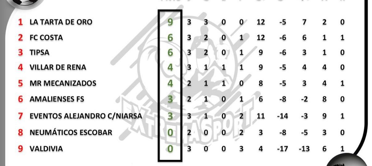 Con estos resultados, La Tarta de Oro se sitúa como líder en solitario tras las tres primeras jornadas, con nueve puntos, pleno de victorias.