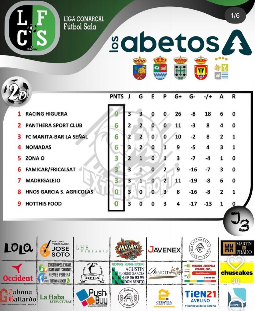 La Liga Comarcal de Fútbol Sala disputó este fin de semana su tercera jornada, dejando partidos muy igualados y movimientos importantes en la clasificación tanto en Primera como en Segunda División.