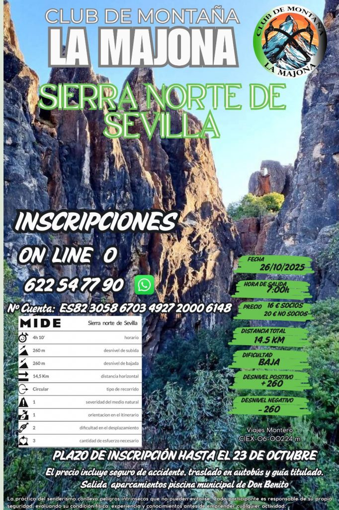 El Club de Montaña La Majona de Don Benito ya tiene todo preparado para su próxima salida, que tendrá lugar en el Parque Natural de Sierra Morena, antiguamente conocido como Sierra Norte de Sevilla. En esta ocasión, los participantes podrán disfrutar de una ruta de gran valor paisajístico que recorrerá la Sierra del Rebollar y culminará en el impresionante monumento natural del Cerro del Hierro, un enclave único por su geología y belleza visual.