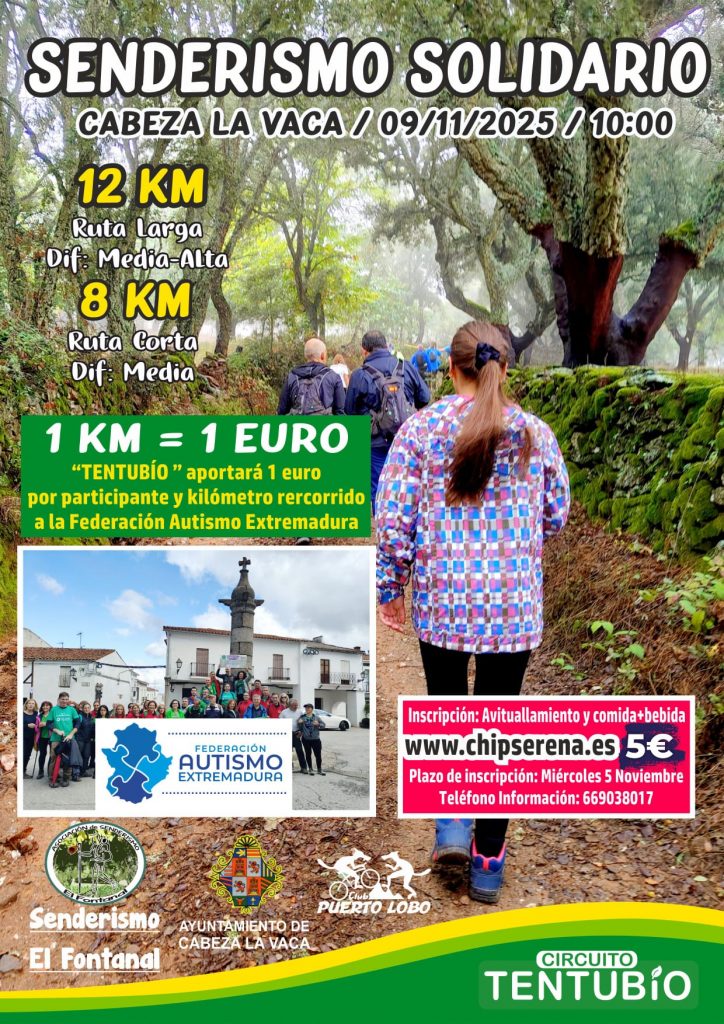La empresa Tentubío Energías Renovables vuelve a mostrar su compromiso social y medioambiental con la organización de la II Ruta Senderista Solidaria “1 kilómetro recorrido = 1 euro donado”, un evento que se celebrará el domingo 9 de noviembre a partir de las 10:00 horas en la localidad de Cabeza la Vaca.